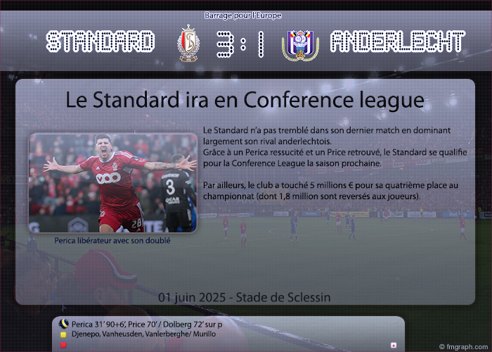 On finit 4e et… l’objectif de nos dirigeants de lutter pour le titre, est réussi. On va devoir jouer un barrage unique contre Anderlecht pour accrocher la dernière place européenne (2e tour qualif de la Conférence league).