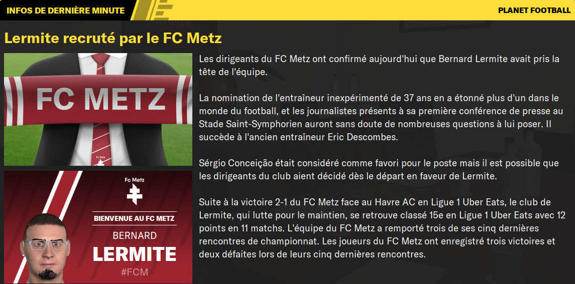 Bernard Lermite est enfin sorti de lâhĂŽpital. Il vĂ©rifie sur son tĂ©lĂ©phone (qui est encore plus vieillot quâil ne lâĂ©tait avant lâaccident, Ă en juger par la maniĂšre dont les passants le dĂ©visagent) les derniĂšres actualitĂ©s. Parmi ces actualitĂ©s, plusieurs concernent le football : ⊠qui vire son entraĂźneur, quelques transfertsâŠ