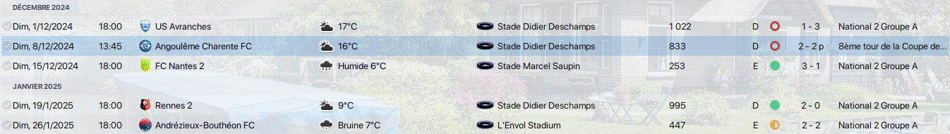 Pour cette fin d’année civile, on est sur une superbe série, Victor rejoue au football, Etienne est devenu titulaire et a pris clairement un gros niveau. Les offres commencent à tomber pour mes deux espoirs et malheureusement financièrement on ne pourra pas suivre.