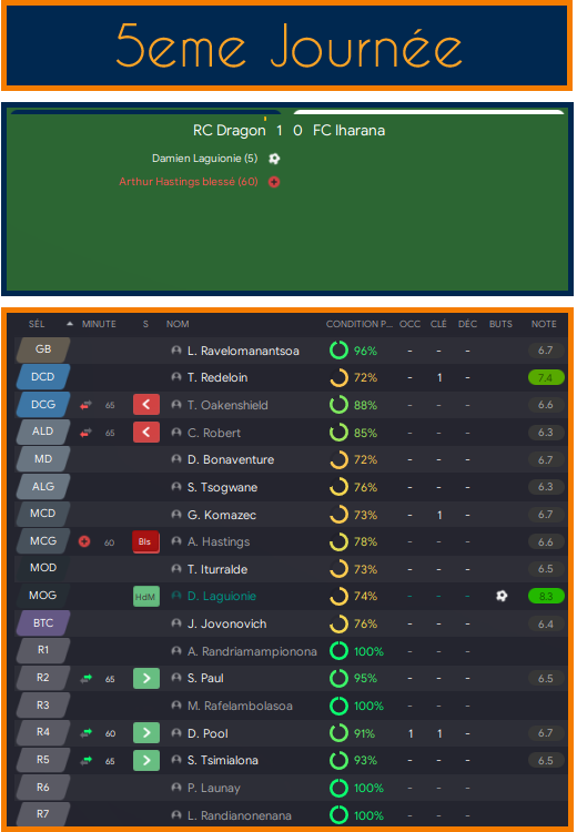 Oui, cela doit être au fait que tu n’a pas les stats pour un ALD, je compte te laisser a ce poste jusqu’a la fin de la saison ensuite je verrai pour une refonte de la tactique.