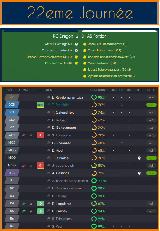Ta saison est correcte, pour se qui et de ta taille j’ai zappé de te mettre dans la surface pour les corners sa sera rectifier la saison prochaine