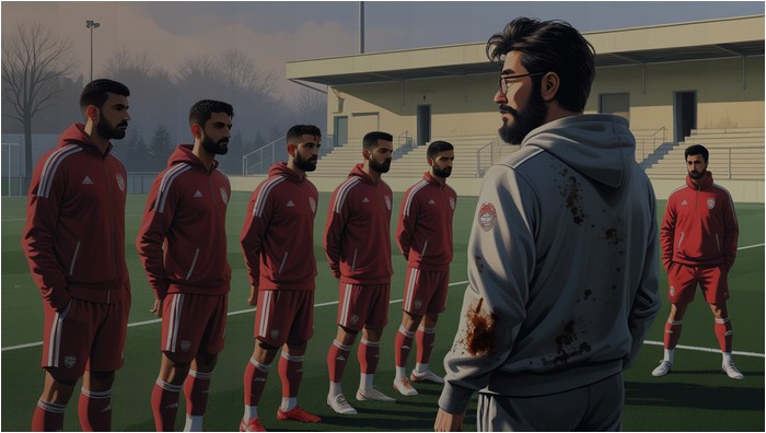 Georgi dĂ©cida ensuite de serrer la main de chacun. Certains lui rĂ©pondirent par une accolade maladroite, dâautres par un geste traditionnel quâil ne comprit pas. Deux ou trois baragouinĂšrent un timide « hello coach », mais la plupart restĂšrent silencieux, se contentant dâobserver. En les regardant, Georgi tenta de deviner les postes de chacun. Le plus grand, en maillot bleu, devait forcĂ©ment ĂȘtre gardien. Mais pour les autres ? MystĂšre total. A ses yeux, ils avaient tous la mĂȘme tĂȘte, la mĂȘme tenue et probablement la mĂȘme mission : marquer des buts.