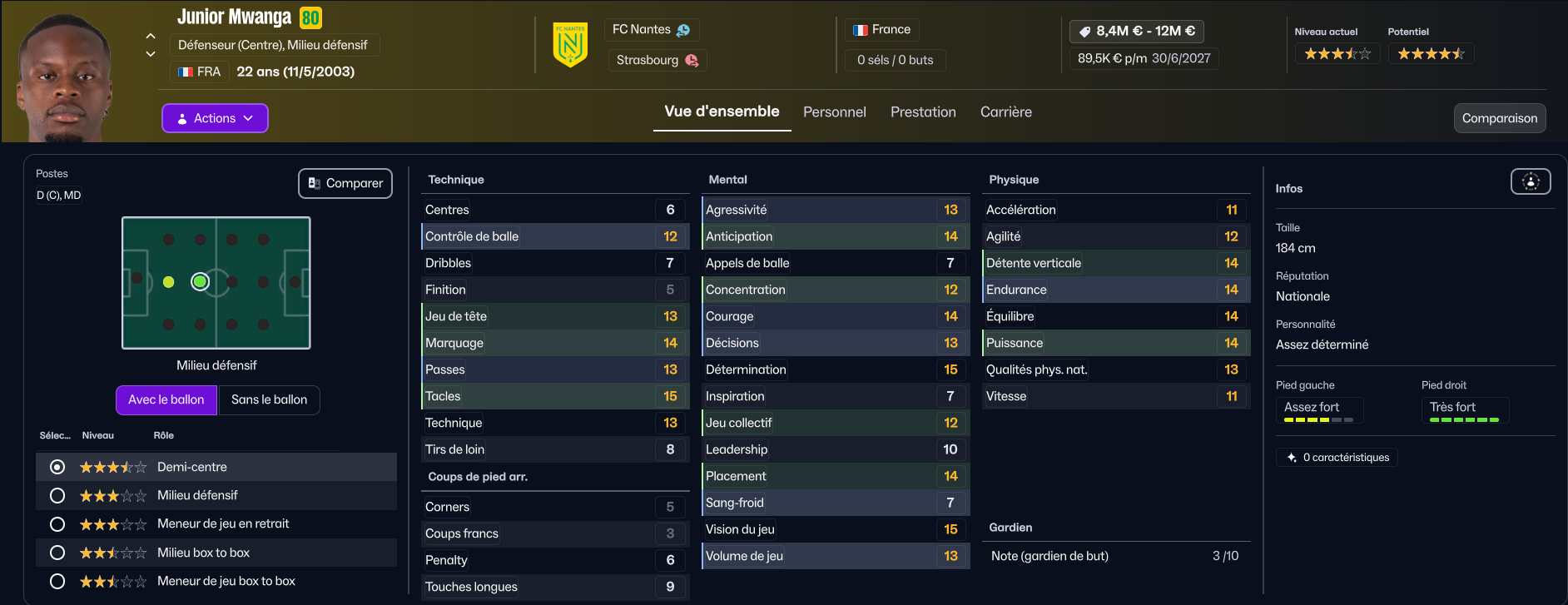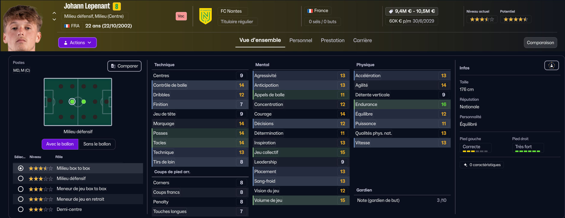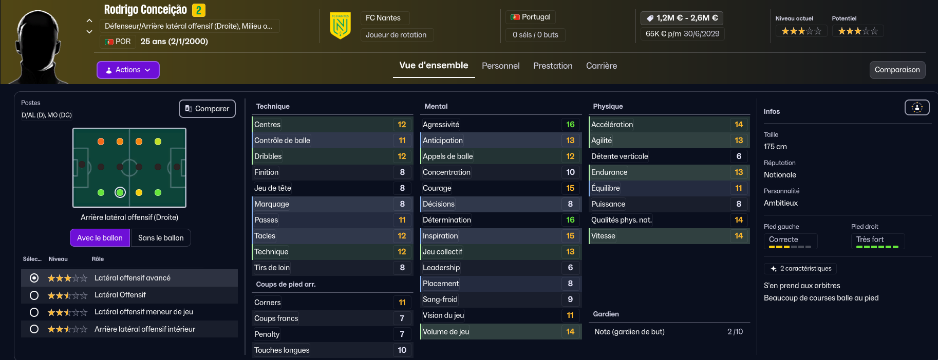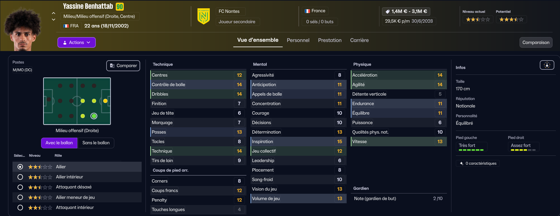 Herba Guirassy, énorme pépite formée au club, verra probablement son avenir se jouer loin de la Beaujoire. En effet, il ne peut pas s’adapter à notre tactique, lui qui ne peut jouer qu’au poste d’ailier (ou difficilement en attaque, mais avec son 11 en finition j’ai moyennement confiance).