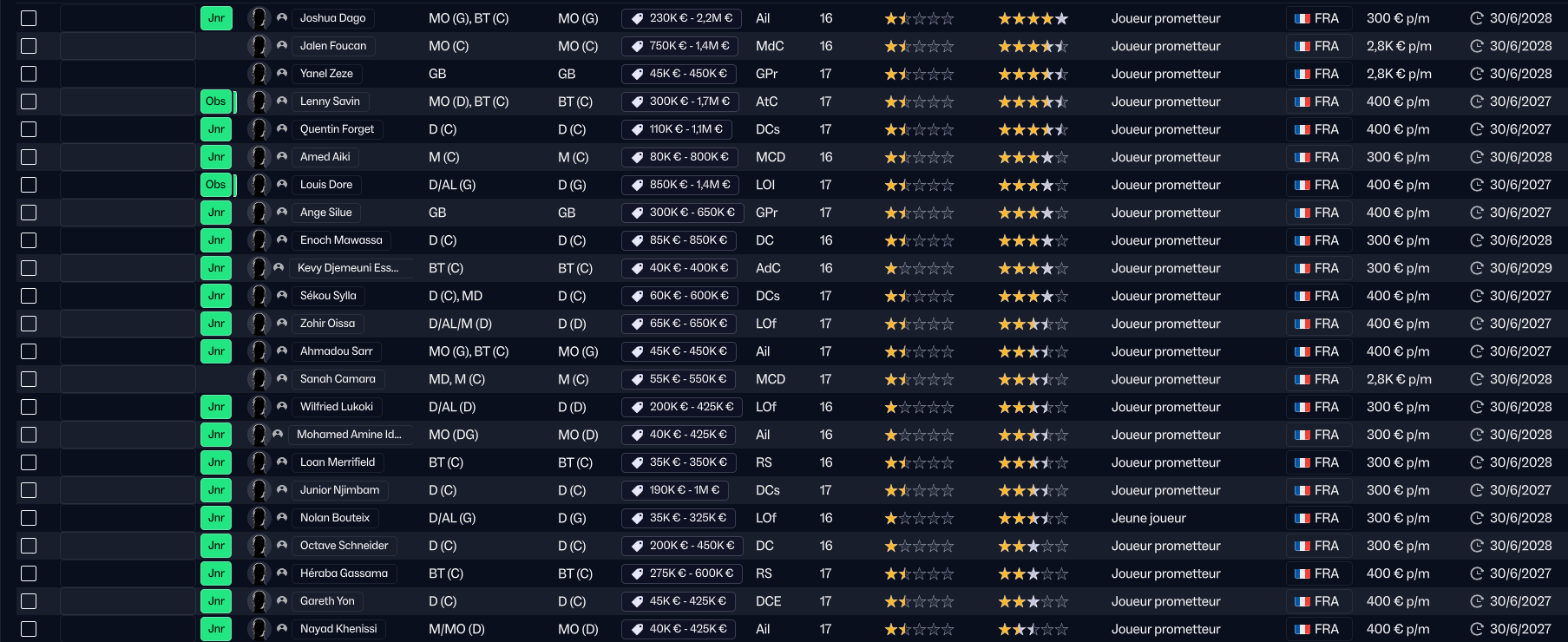 En effet, Sékou Doucouré vient apporter un peu plus de profondeur en défense ! Ce n’est pas le joueur le plus prometteur de l’équipe (on a pas énormément de talents en défense), il a quand même du potentiel.