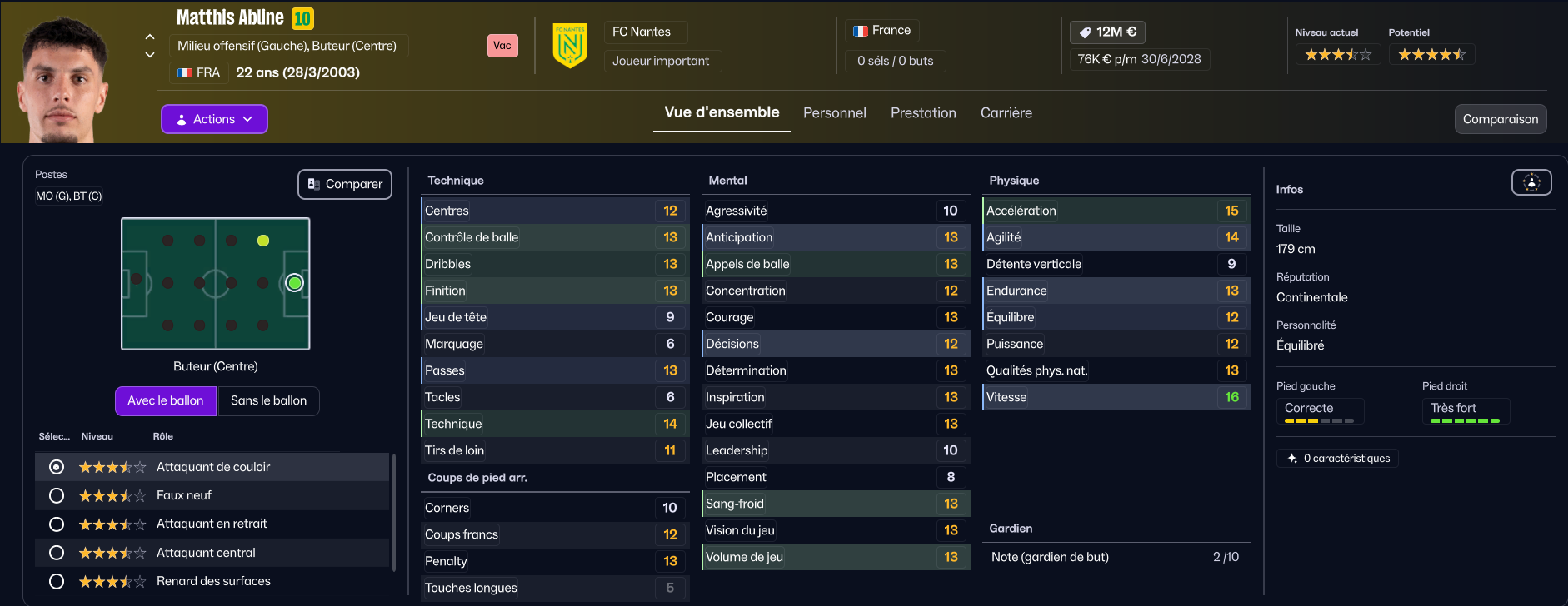 On ne va pas passer par quatre chemins, Mathis Abline est le meilleur joueur de notre effectif… Et c’est pour ça qu’il mérite un meilleur club, ce qui, couplé à sa valeur élevée, fait qu’on va probablement le ve…