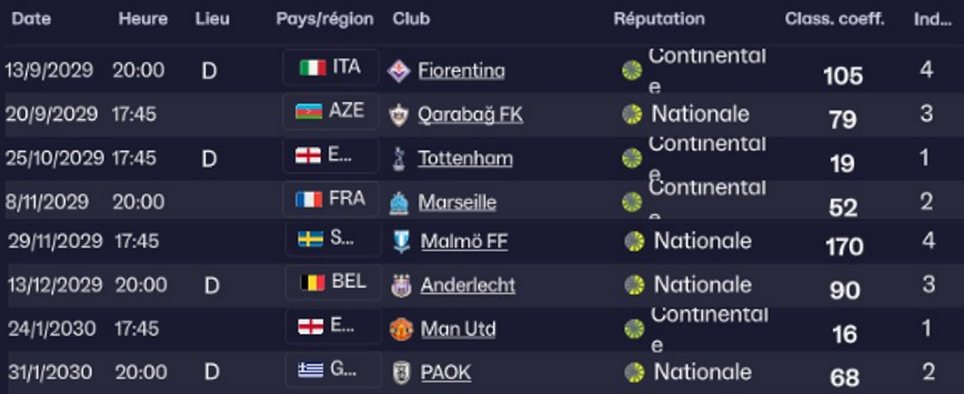 Pour rappel, nous nous attendons a 4 matchs difficiles face à des clubs du top 5 européen et à 4 matchs plus abordable.