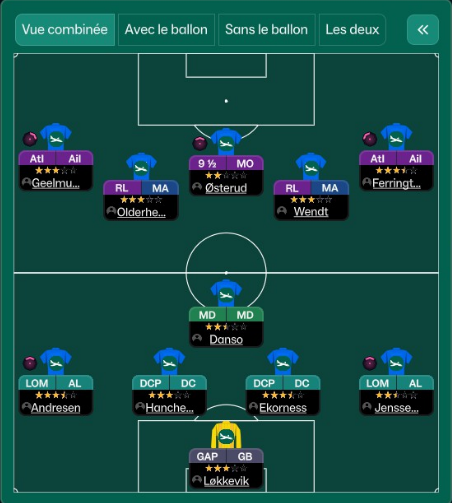 Je décide après avoir vu les résultats de changer de tactique, ce changement tactique apparait après le match face a Bodo/Glimt.