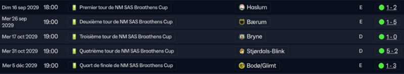 Ici , ce fut une formalité pour les premiers tours avec des rencontres face à des clubs de divisions inférieur. La première « difficulté » fut notre rencontre face a Bodo/Glimt mais avec le changement tactique, ce ne fut qu’une formalité finalement.