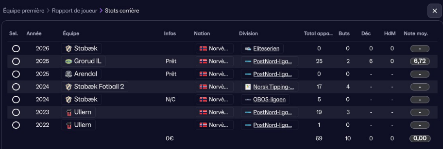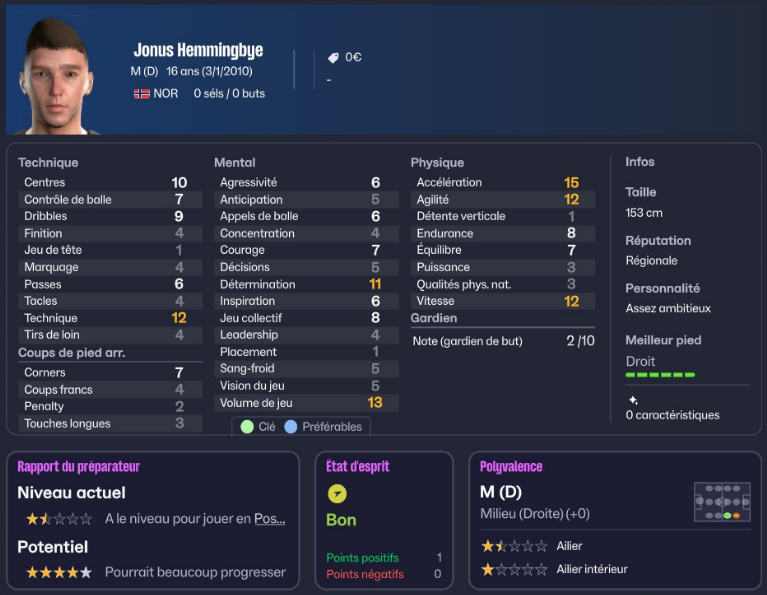 Jonus Hemmingbye est mon coureur de marathon du club. Il va Ă©galement falloir lui donner des hormones de croissance car sa taille va faire baisser la taille moyens des homme en NorvĂšge (1m80) de plusieurs cm. Il sera formĂ© en tant quâailier droit.