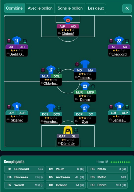 Voici la tactique, qui nâa pas changer, exceptĂ© pour mes dĂ©fenseurs latĂ©raux Ă qui jâai donner quelques consignes offensives en plus.