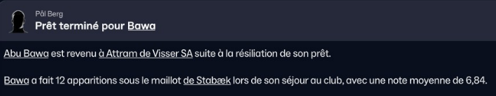 Nous enregistrons le retour de 2 joueurs en prĂȘts qui intĂšgrent lâĂ©quipe premiĂšre.