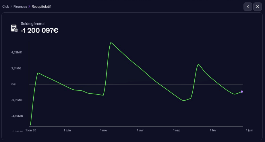 Les finances, on a Ă©tĂ© en dĂ©ficit toute la saison mais les primes de fin de saison et les rĂ©sultats commerciaux ont permis au club de sortir la tĂȘte de lâeau.