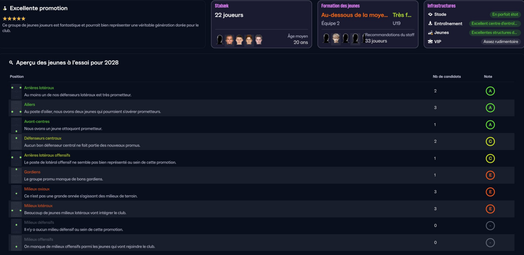 DâaprĂšs mon adjoint, câest la meilleure promotion de jeunes depuis mon arrivĂ©e. Des ailiers, arriĂšres latĂ©raux et un buteur notĂ© A. En voyant les promotions prĂ©cĂ©dente, jâai hĂąte de voir ce que lâon va avoir ![]()