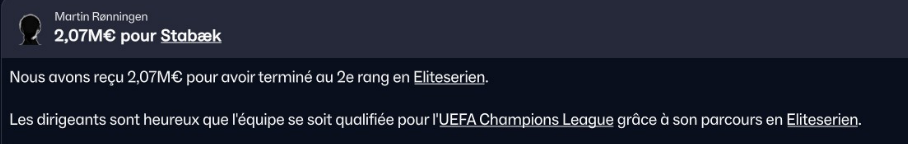 Belle saison. Je suis aussi Ă Stabaek (aprĂšs un passage de 3 saisons en Ligue 1 Japonaise chez les filles). Jâai encore quelques joueurs au club que tu as aussi du coupâŠmais je ne spoil pas sur leurs capacitĂ©s futures ![]()