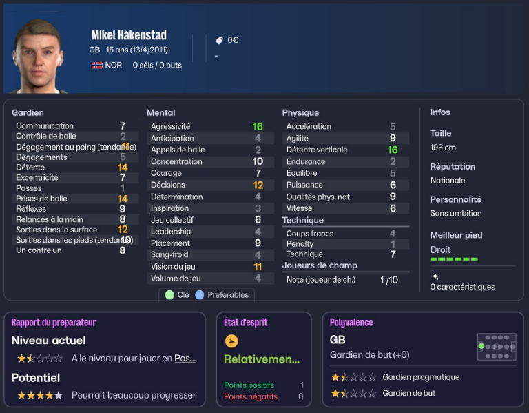 Mikel Hakenstad est un bon gardien pour son age mais son ambition va je pense freiner sa progression et la concurrence est rude.