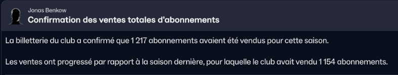 Le nombre dâabonnĂ© Ă lĂ©gĂšrement augmenter cette saison, je mâattendais Ă plus mais on fera avec.