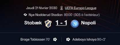 Au retour, aprĂšs un match plus sobre en but, nous arrivons a marquer Ă la 70Ăšme minute. Naples Ă rĂ©duit le score dans les arrĂȘts de jeu mais les joueurs fĂȘtaient dĂ©jĂ leur qualification ![]()