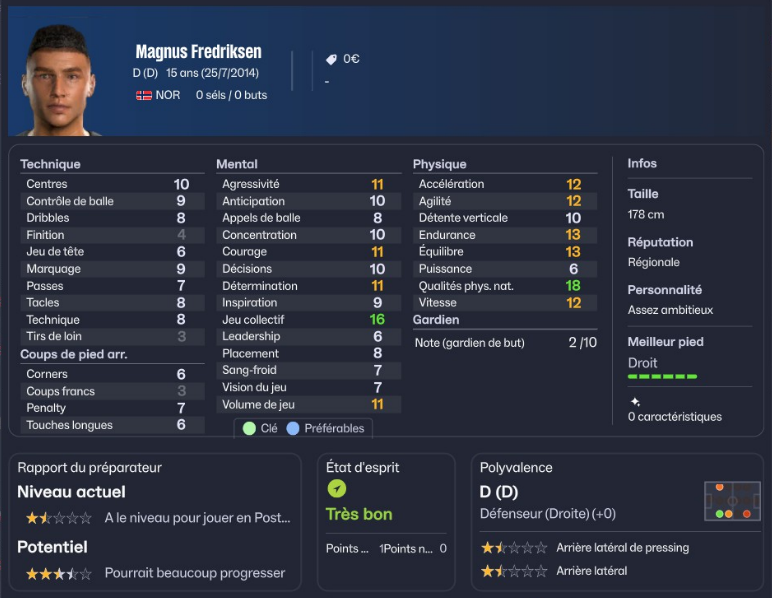Cet athlĂ©tique dĂ©fenseur droit Ă le potentiel pour venir jouer les troubles fĂȘtes en Ă©quipe premiĂšre dâici quelques annĂ©es.