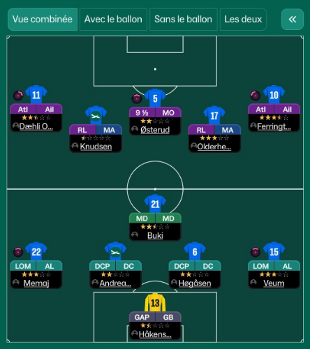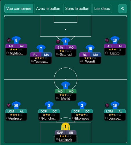 Oui, le changement tactique est surtout lĂ en fin de saison. La saison est dĂ©jĂ pas mal avant le changement qui arrive fin octobre. Je sais pas si jâai une sauvegarde dâavant le changement pour jouer la fin de saison en off et voir ce que ça aurait pu donner ![]()
