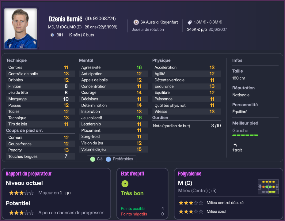 Le premier nom à rejoindre les Violets n’est autre que Dženis Burnić, milieu de terrain polyvalent en provenance de Karlsruhe. Formé au Borussia Dortmund, doté d’une solide expérience en 2. Bundesliga, Burnić arrive avec le profil idéal pour stabiliser le cœur du jeu klagenfurtois. Sa qualité technique et son sens du placement devraient rapidement en faire l’une des pièces maîtresses du dispositif de Maximilian Szymański.