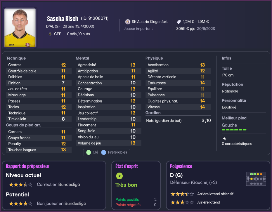 Sur le front de l’attaque, l’Austria mise sur la puissance et l’impact physique de Lex-Tyger Lobinger, transfuge du FC Viktoria Köln. L’attaquant, apprécié pour son engagement et sa capacité à peser sur les défenses, représente une option supplémentaire de taille pour dynamiser l’animation offensive d’un groupe qui devra hausser son niveau d’exigence pour exister parmi l’élite.