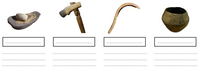 Exercice 3 : Inscrivez le nom des objets dans les cases et indiquez en dessous A quoi ces objets servaient.