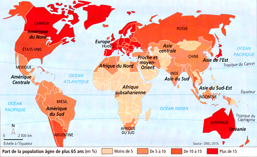 - Le continent le moins important de la population agée de plus de 65 ans est l"océan « ATANTIQUE » car la population agée de 65 ans est à moins 5% en « ATLANTIQUE »