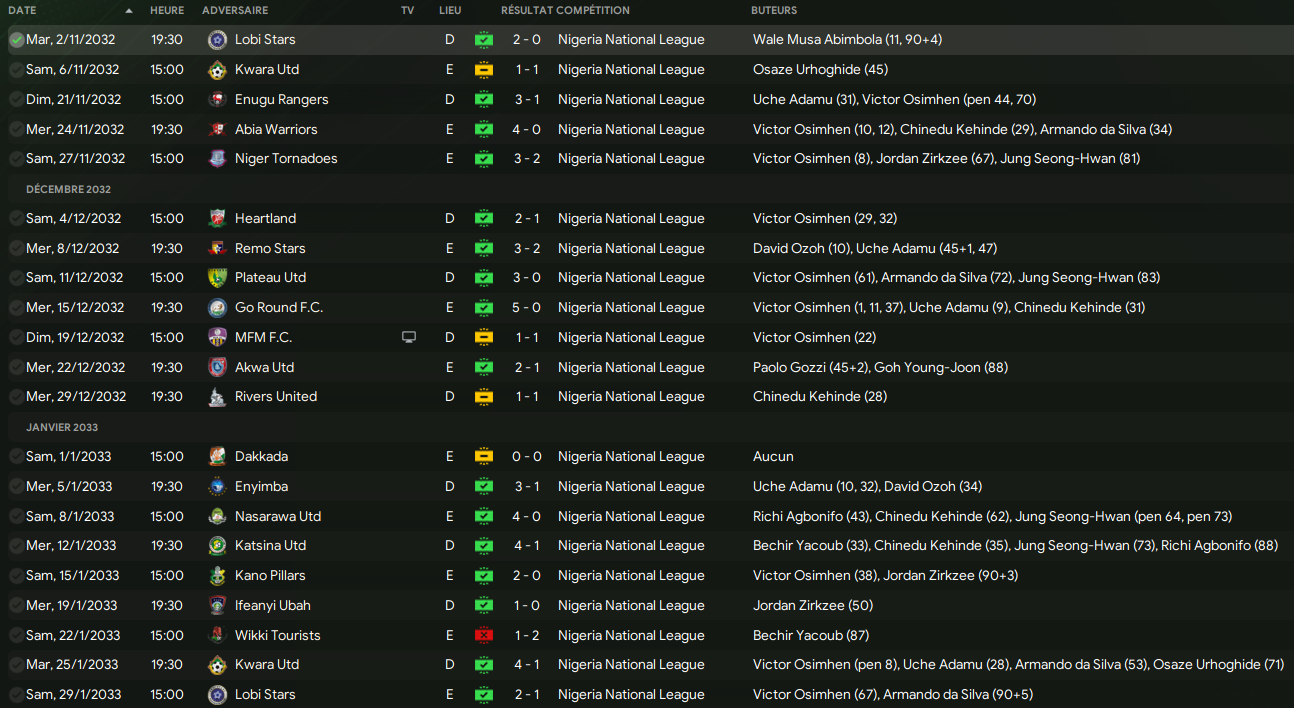 C’est encore une très belle saison, avec seulement 2 défaites comme les saison passées mais juste 4 matchs nuls, ce qui devrait nous assurer un nouveau titre