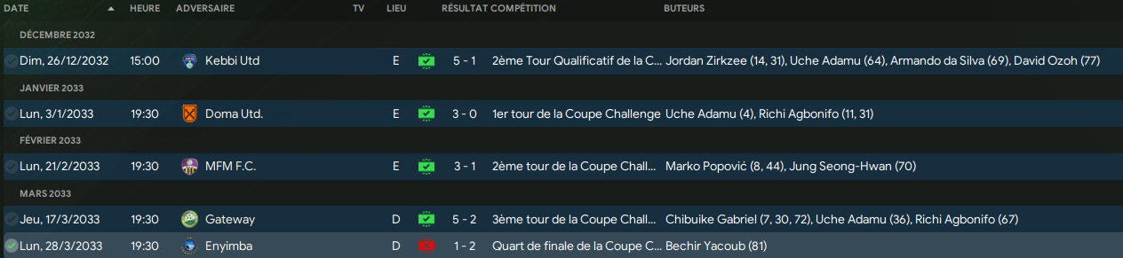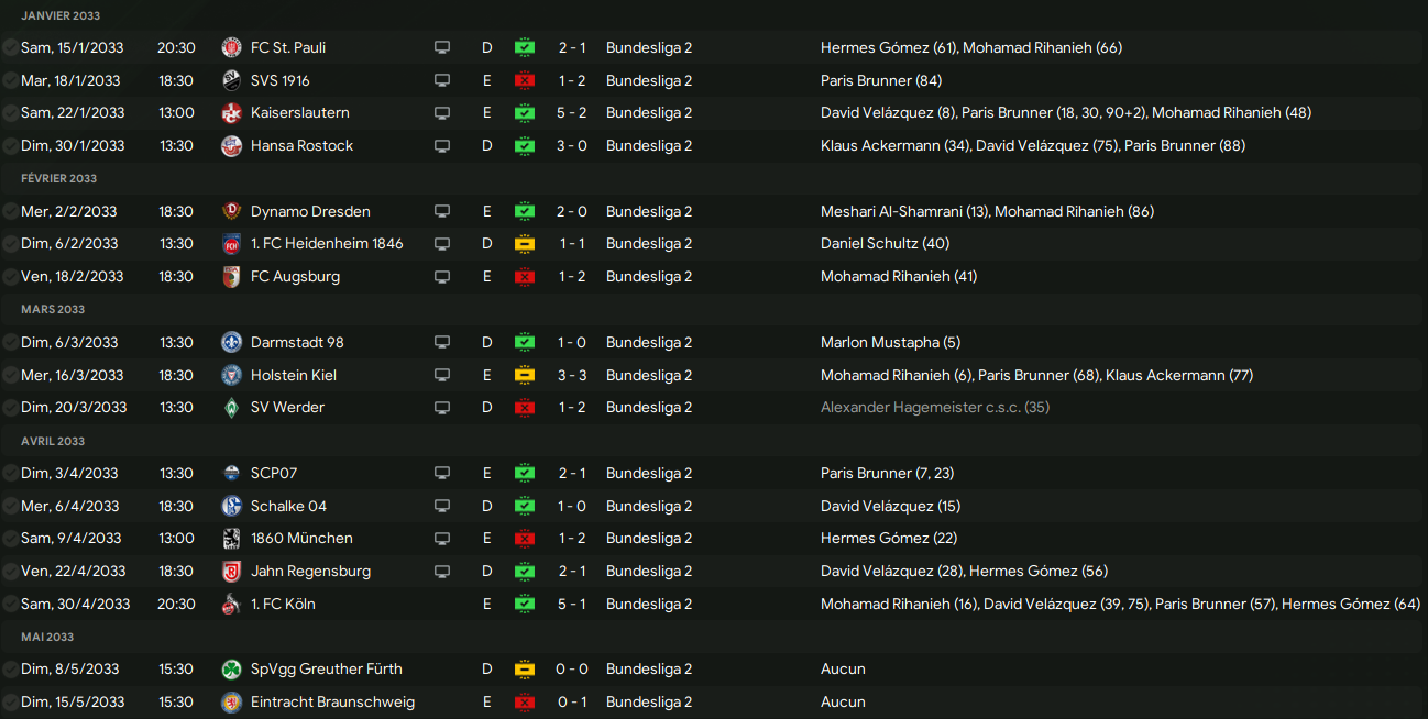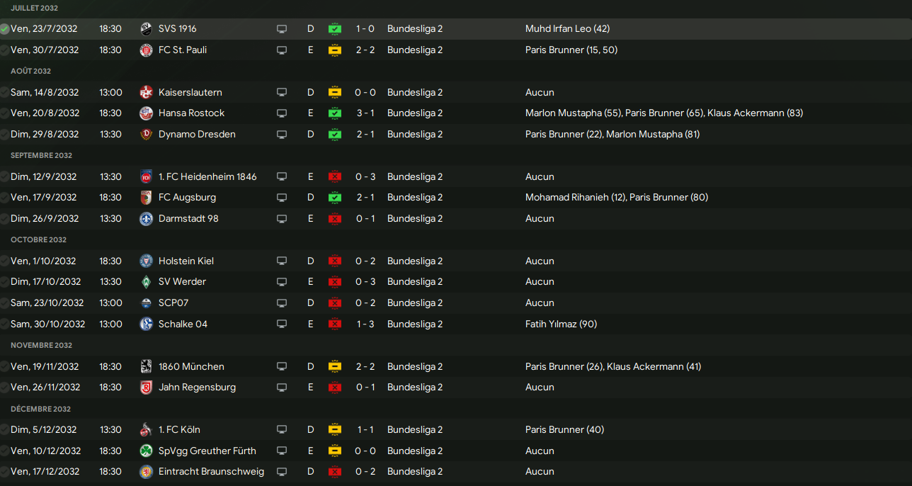 32/33 (@Cesar) : 10e de D2 ; éliminé au 2e tour de la Coupe d’Allemagne