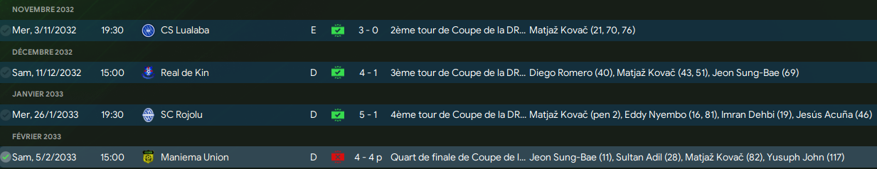 26/27 (@kevinb55) : Champion de D1, 2e tour de la coupe et éliminé en demi de LDC