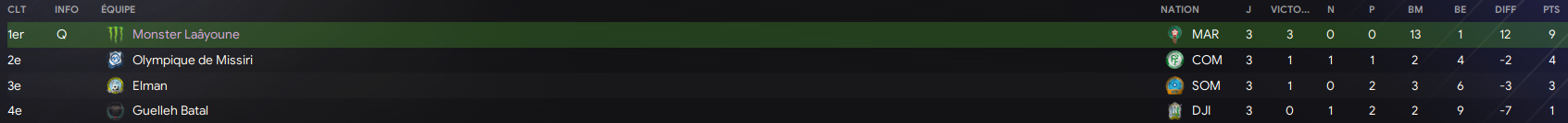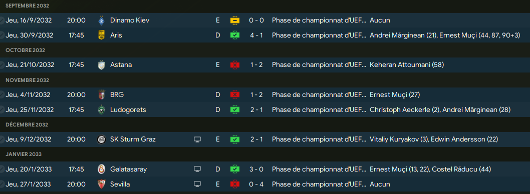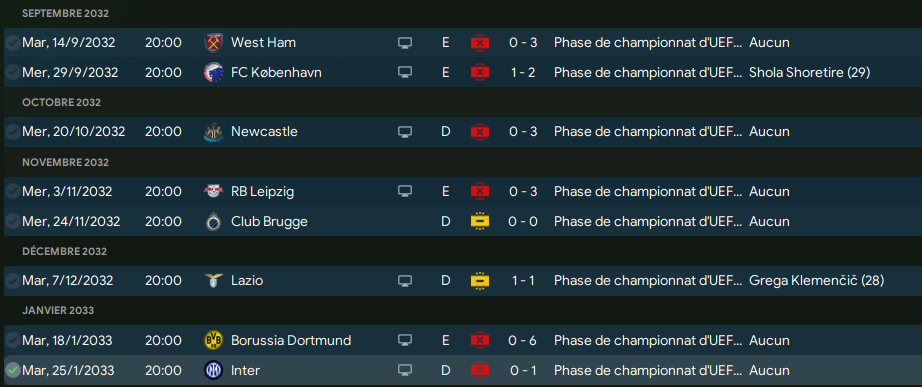 Une phase de championnat assez compliqué, le tirage nous oppose à des sacrés adversaires et nous n’arriveront pa à remporter le moindre match même si nous sommes parvenu à faire 2 nuls.