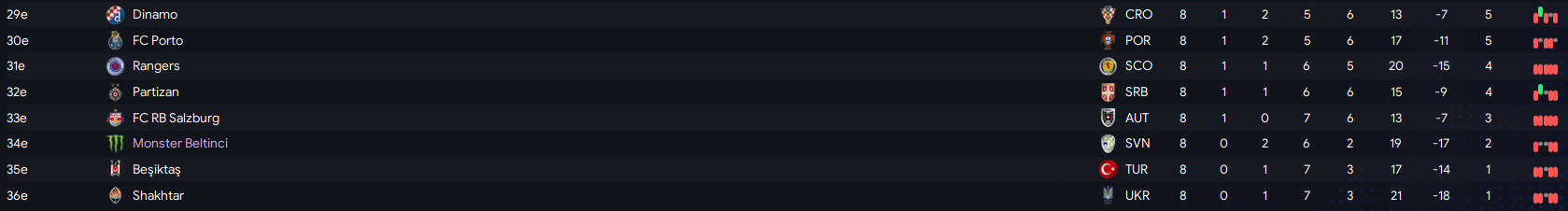 La phase de Championnat est composé de 36 équipes, chacun joue 8 matchs et les 8 premiers passent en 1/8 de finale, les 16 équipes suivantes joueront un 1/16 de finale !