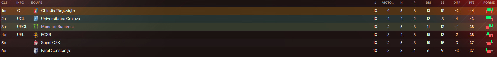 Notre club est en D1, composé de 10 équipes où chacun s’affronte 4 fois pour 36 matchs ! 3 places sont qualificatives pour l’Europe voir 4 suivant la coupe alors que le dernier descends et le 9e joue un barrage