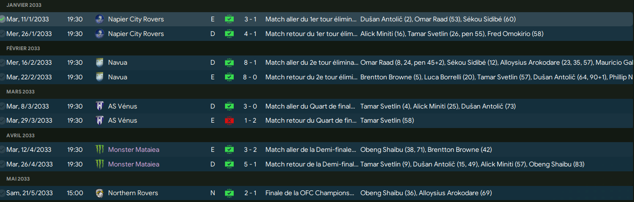 Sans surprise, on termines facilement 1er et on joueras Napier City, une belle équipe de N-Z