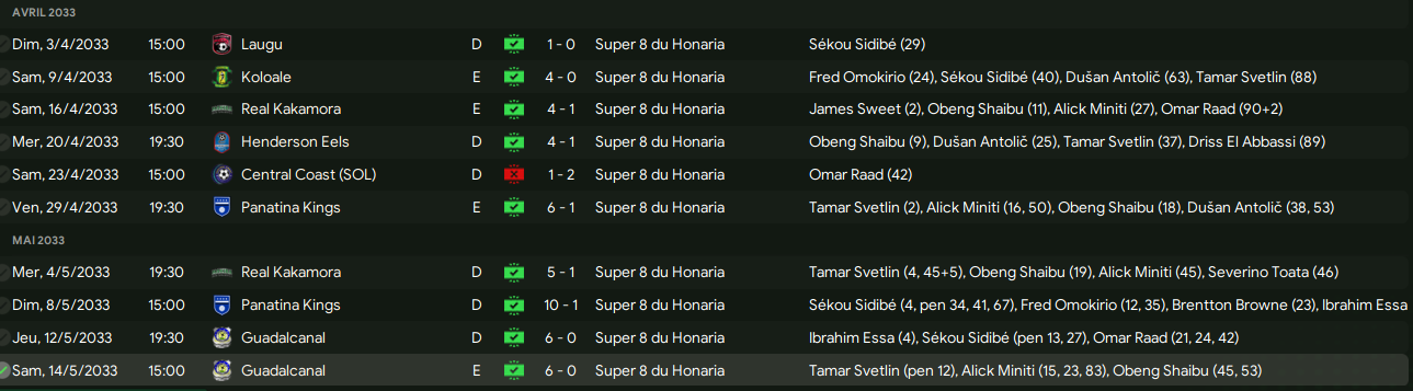 Nombre Homme du match sur une saison : 26 Raphael LE’AI (22/23) @kevinb55 (P2)