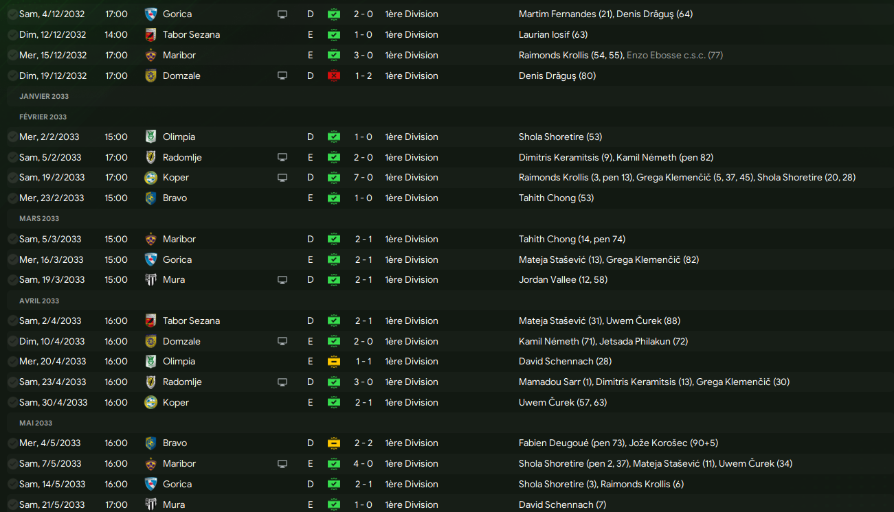 21/22 (@kevinb55) : Champion de D1, et éliminé en 1/16 de la coupe