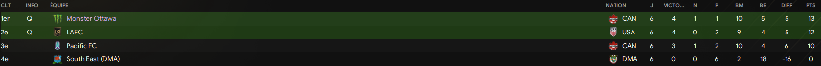 Nous finirons même 1er devant LAFC ! une belle performance pour notre club canadien, cela faisait longtemps que nous n’avions pas été aussi performant. en quart nous tombons sur Atlanta, la tâche s’annonce compliqué