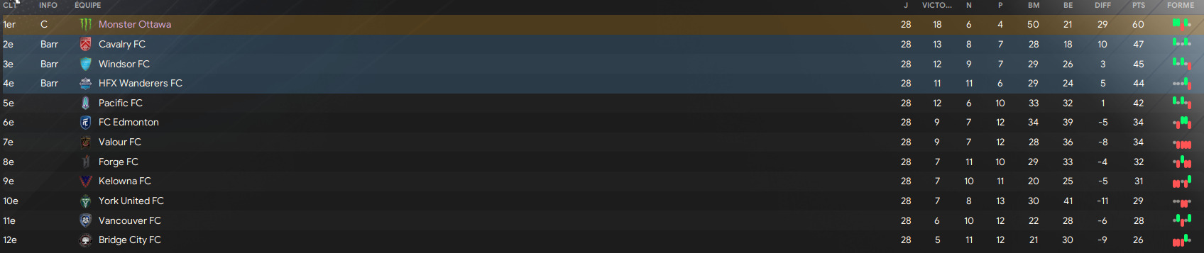 Nous retrouvons les PO pour la 3e de suite, une très bonne nouvelle pour nous surtout que nous sommes 1er du classement cette fois encore ! Nous jouerons donc les 4e, HFX Wanderers.