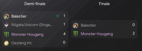 2025 (@Rhino ) : Vainqueur de Premier League, demi finaliste de la coupe
