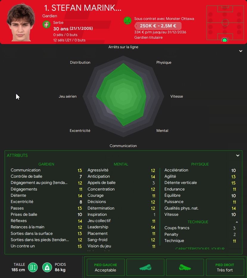 Matchs sans encaisser de buts : 22 : Stefan MARINKOVIC (2034) @Tagliafico