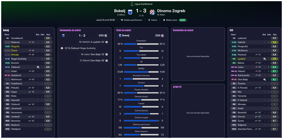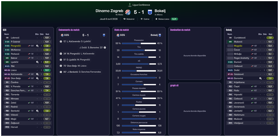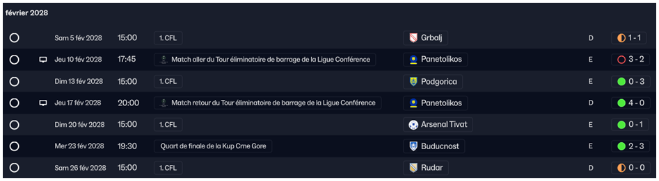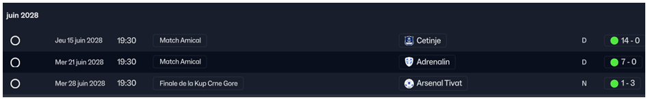 Nous venons de terminer le match, et la semaine prochaine, nous recevons Struga, un club de Macédoine du Nord, pour notre premier tour de qualifications en Champions League.