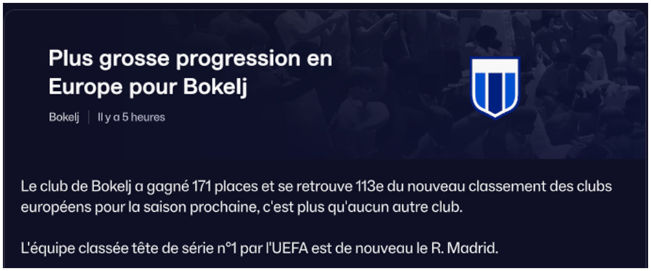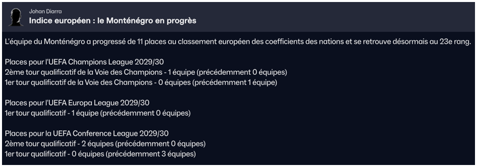 A noter que notre bon parcours en Europe permet au championnat de monter au classement des coefficients, et c’est bon pour tout le monde !