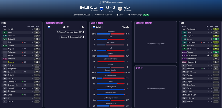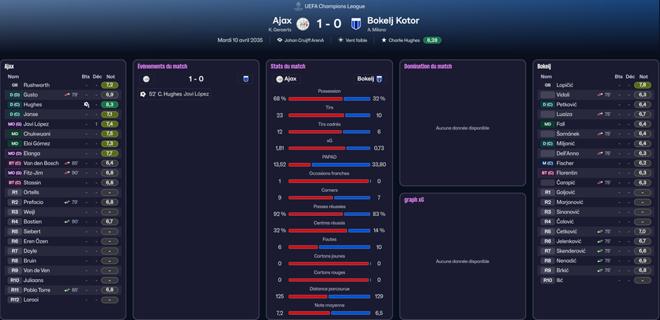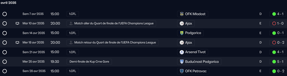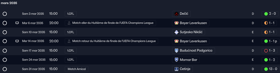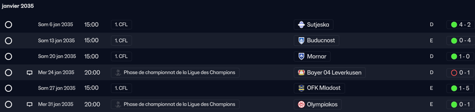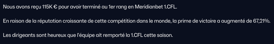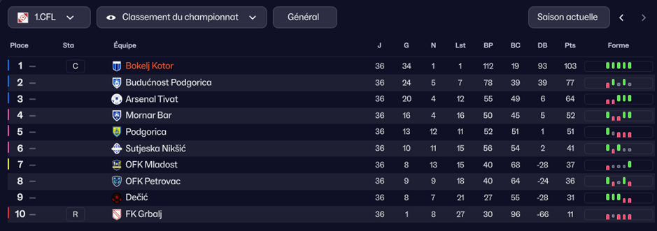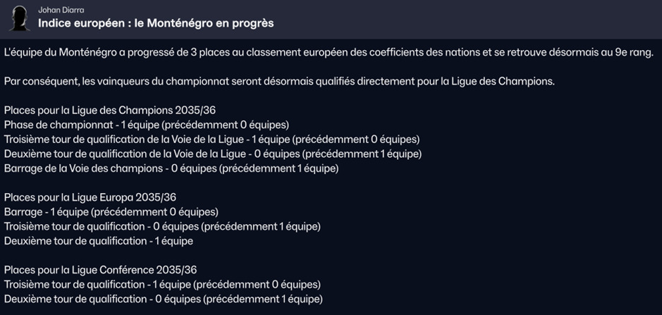 PS : Lâupdate dĂ©conne un peu de temps en temps. La saison derniĂšre, aucun autre club montĂ©nĂ©grin, Ă part moi, nâa jouĂ© lâEurope. Alors quâil y avait des qualifiĂ©s. LĂ , je joue un tour de barrages alors que je devais ĂȘtre en poules direct. JâespĂšre quâil nây aura rien de plus grave âŠ