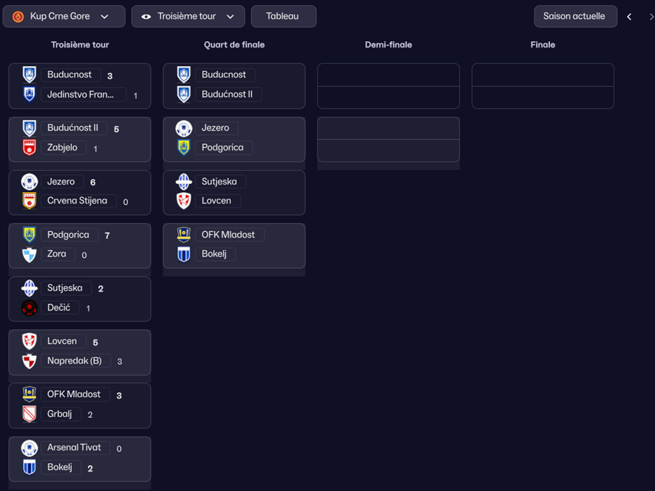 Cette saison, Buducnost va jouer la Conference League, Ă©liminĂ©s de CL par Anderlecht et de lâEuropa League face au FC Sheriff. Ils seront accompagnĂ©s du OFK Mladost, sorti de lIgue Europa par Qarabag.