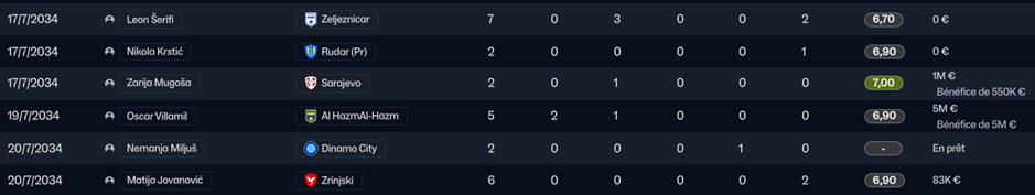 Serifi est parti comme prĂ©vu. Mugosa a aussi quittĂ© le club, aprĂšs 9 saisons avec nous !!! DĂ©part attendu mais qui reste en travers de la gorge, Villamil. Notre milieu droit cĂšde aux sirĂšnes de lâArabie Saoudite. 3 saisons pleines chez nous. Cektovic nous quitte aussi. 11 saisons chez nous. Il nâa toujours pas retrouvĂ© de club.