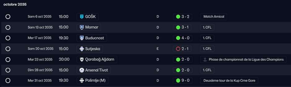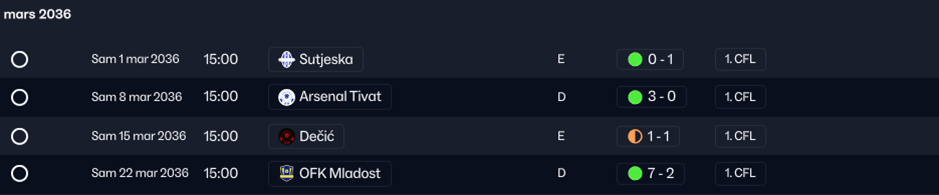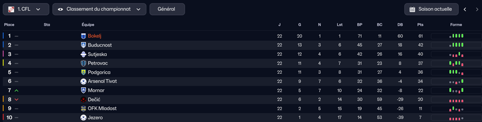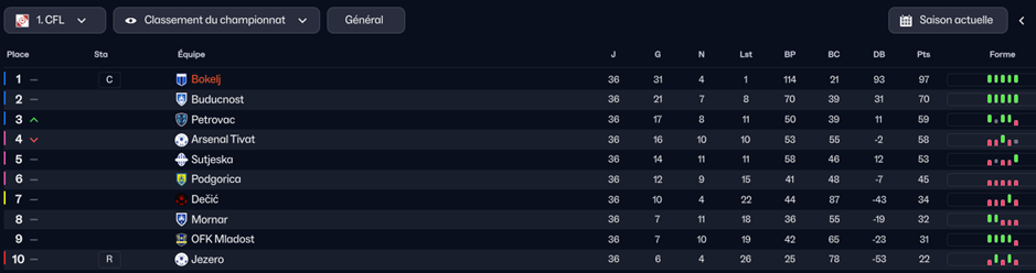 LâArsenal Tivat termine 4Ăšme du championnat. Belle perf. EliminĂ©s en poule de conference league et dĂšs le 2Ăšme tour de coupe âŠ