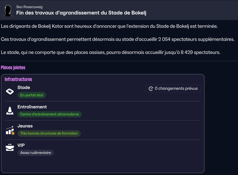 Nous avons jouĂ© Ă domicile en Champions League !! Lâagrandissement du stade est terminĂ© et nous pouvons accueillir maintenant 8429 spectateurs chez nous ! Lâinauguration a eu lieu face Ă Manchester City ! Bon, on a logiquement perdu, mais câĂ©tait tout de mĂȘme une belle fĂȘte en dehors du rectangle vert, dans un stade plein pour lâoccasion !!