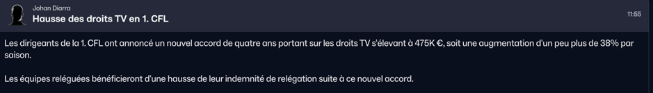 Bonjour Ă tous, saison 5, câest parti. Parlons mercato pour commencer. 2 bonnes nouvelles, Serifi et Juricic, en prĂȘt la saison derniĂšre, ont dĂ©cidĂ© dâaccepter les contrats proposĂ©s et restent donc au club Ă titre dĂ©finitif !
