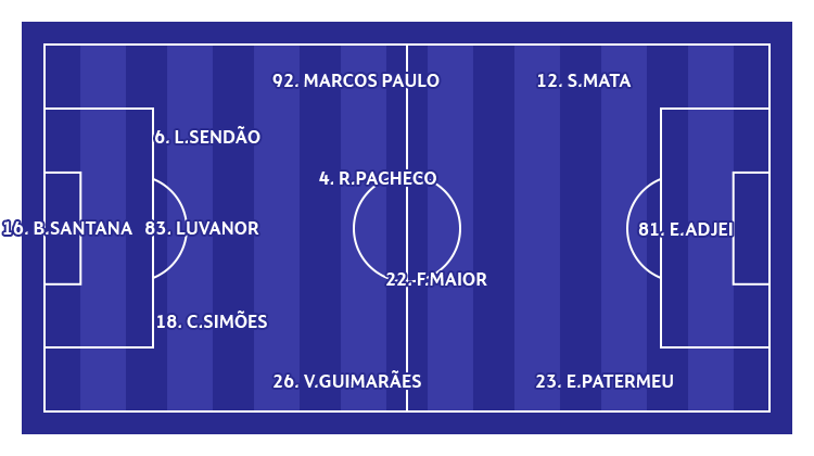 | Gardien | 16.B.SANTANA | Piston Droit | 26.V.GUIMARÃES |