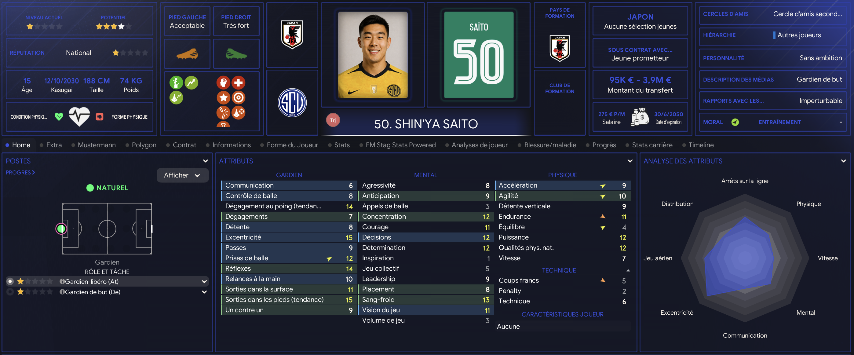 Shin’ya est un jeune portier japonais issus de l’académie Hiraoka de Nagoya. C’est le gardien le plus prometteur du Japon. Passé par le centre de formation de Nagoya, il a rejoint Vianense à l’hiver suite au partenariat entre les deux clubs. Il est représentant par le neveu de Ichiban Kasuga. Il a de grandes qualités et a le potentiel pour se hisser en professionnel ainsi qu’au niveau international toutefois il devra faire face à une grande concurrence. L’an passé il a fait ses débuts en U19 en tant que doublure de Ricky. En outre il sera le numéro 3 au poste cette saison.